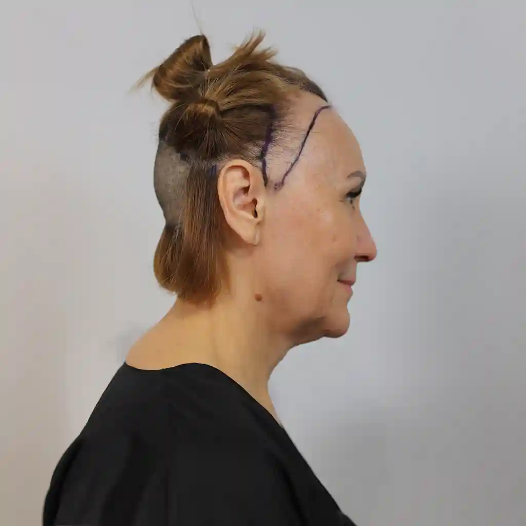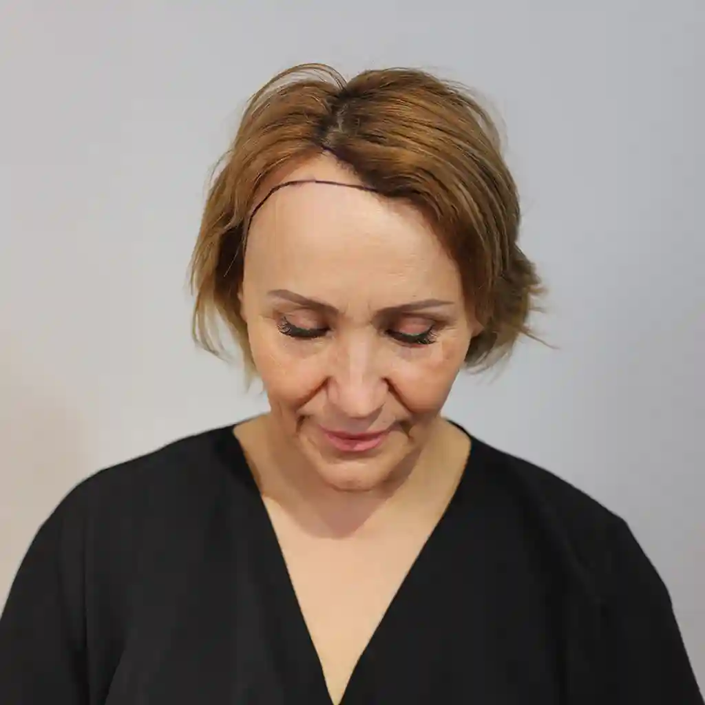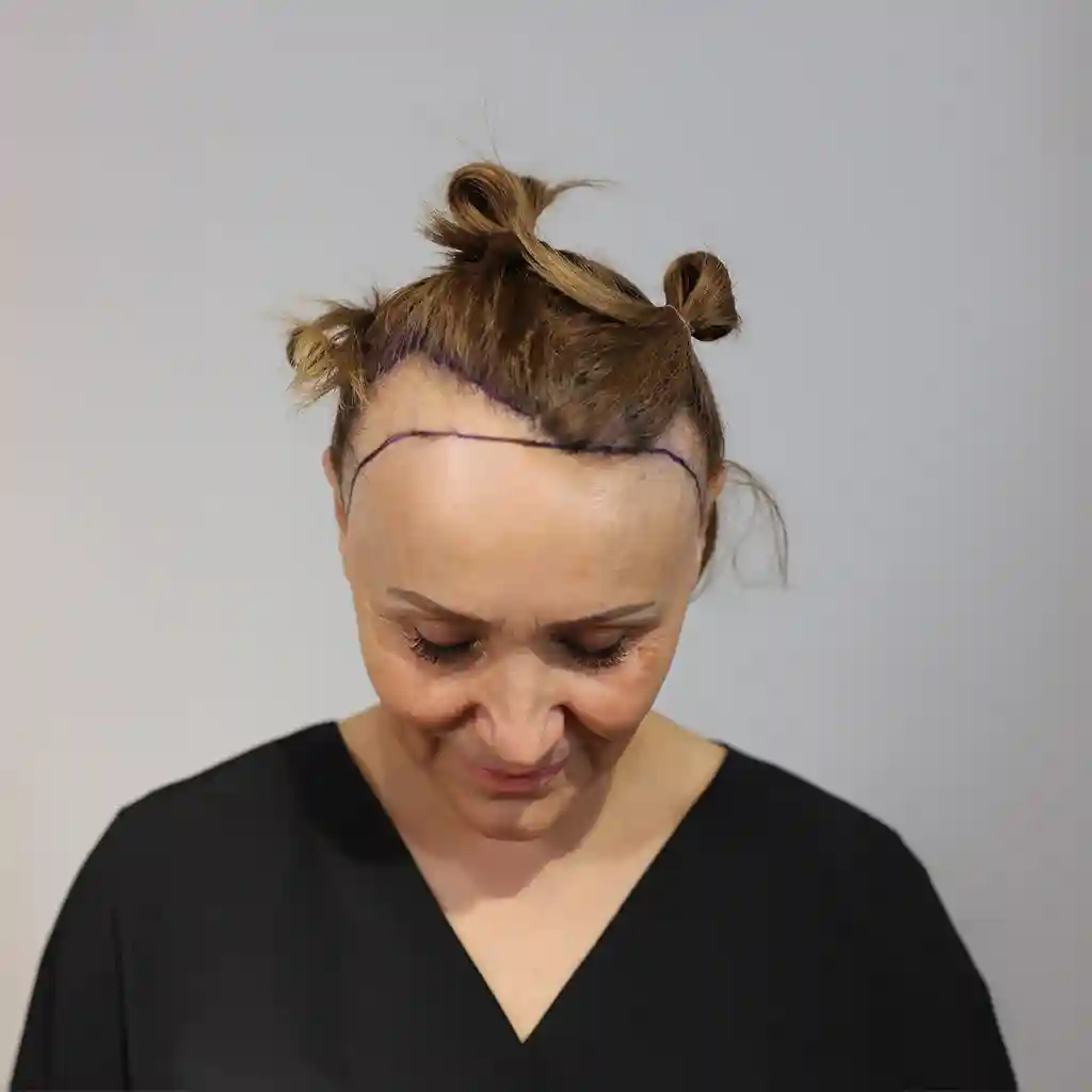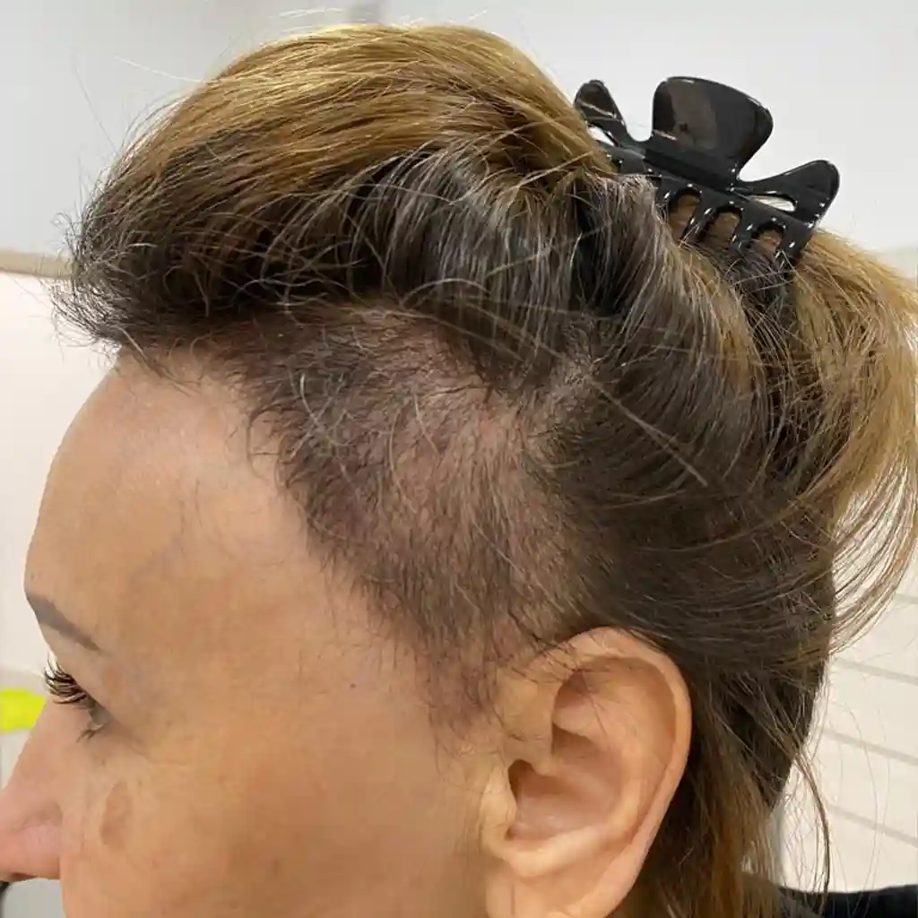 A minimum of 4000 grafts were transplanted to Roza using the Sapphire FUE technique. Special attention was given to the patient-specific hairline design to ensure a natural appearance. The grafts were implanted with a dense and balanced distribution to achieve fuller and natural-looking results.